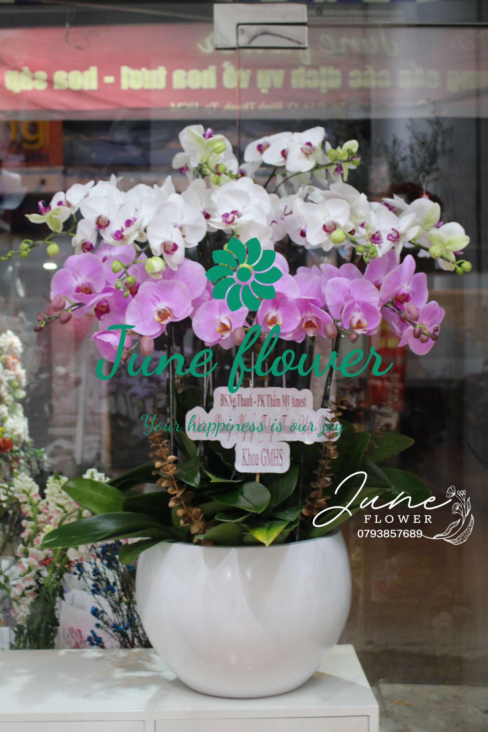 Chậu Lan hồng phối trắng thích hợp cho các dịp lễ