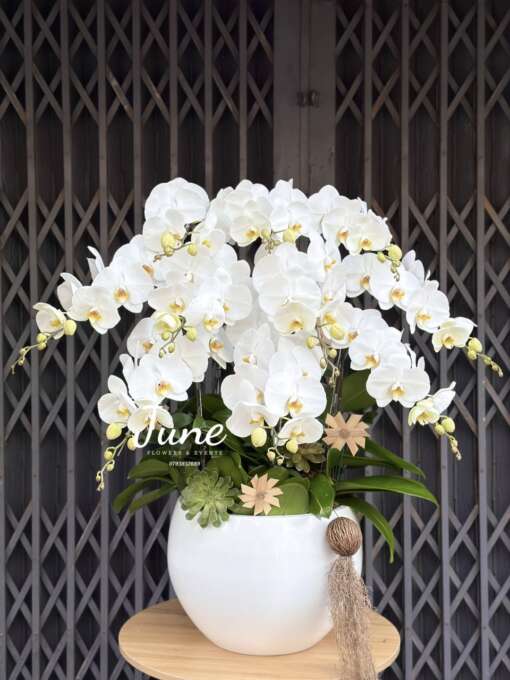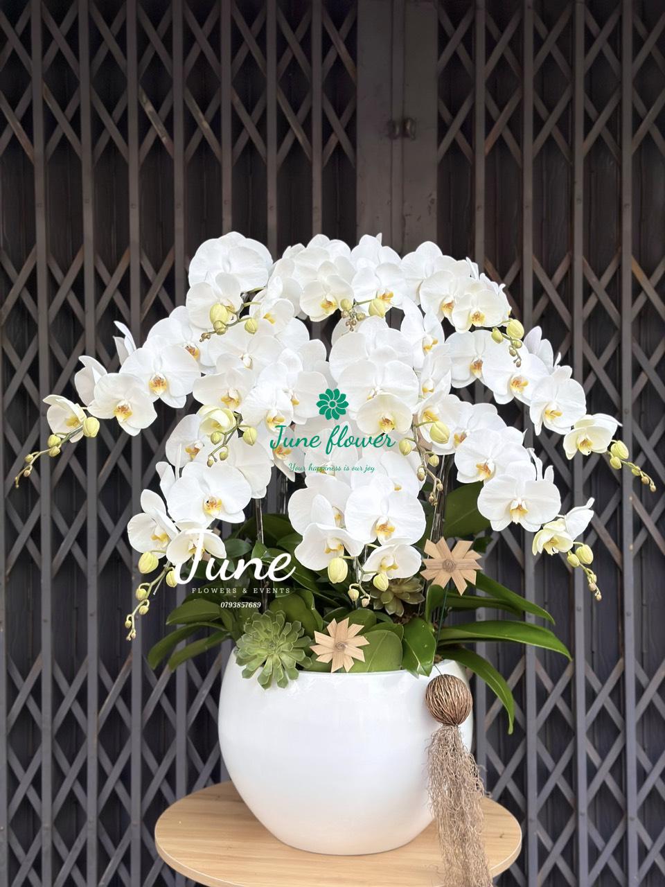 Categories: HOA CHẬU, HOA CHÚC MỪNG, HOA KHAI TRƯƠNG, MÀU TRẮNG, MÀU XANH (XANH LÁ/XANH DƯƠNG) Tags: chậu lan khai trường, chậu lan sang trọng, chậu lan trắng, hoa chúc mừng, hoa lan, mừng khai trương