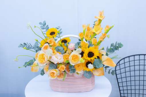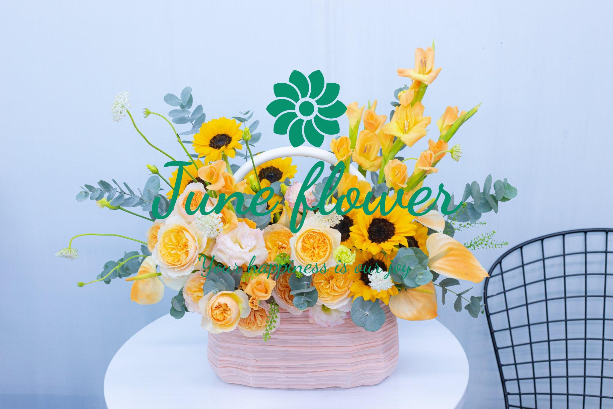 Giỏ hoa hồng Juliet mix Hướng Dương