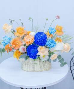 Giỏ hoa cúc Mẫu Đơn mix tone cam