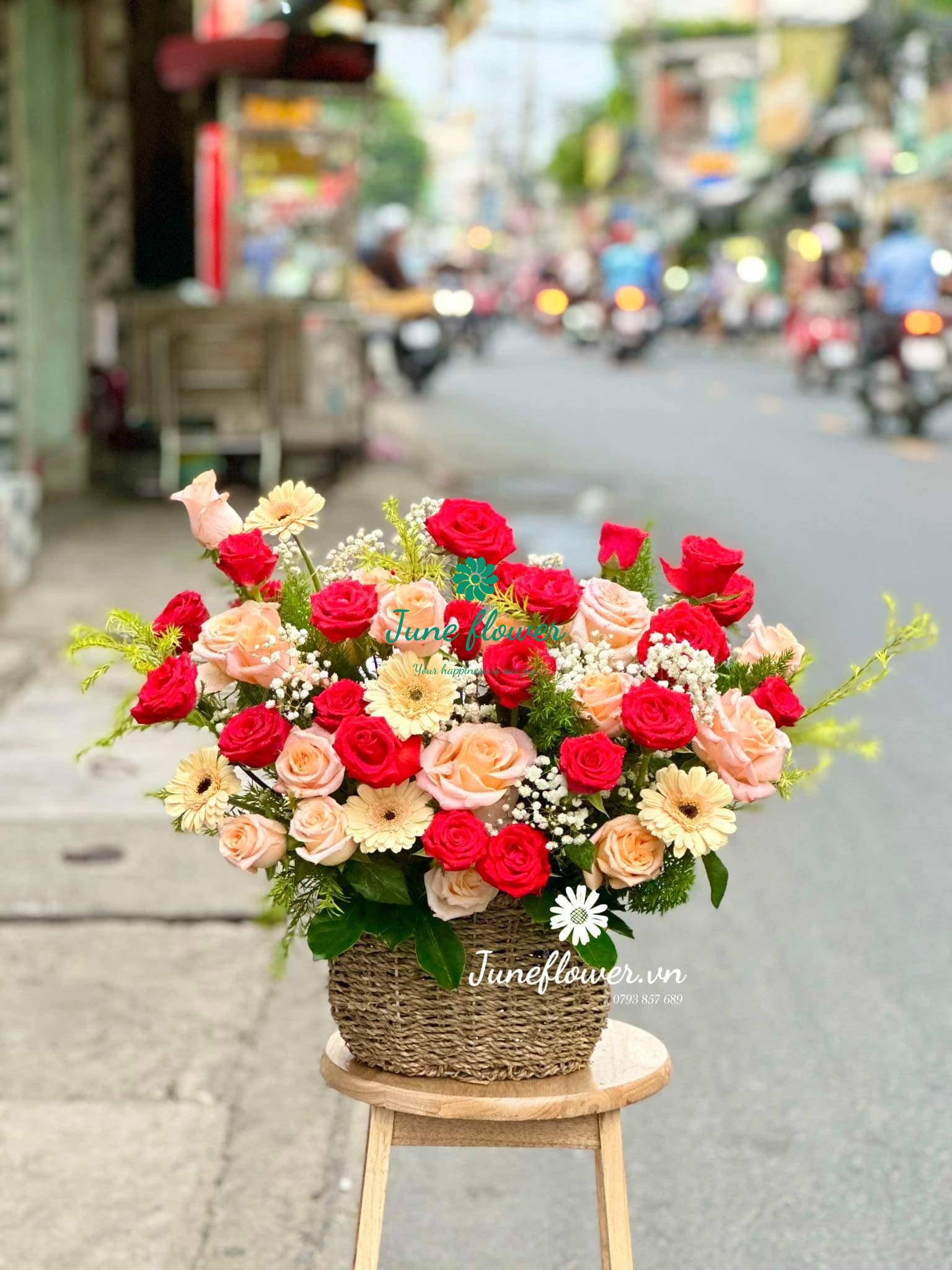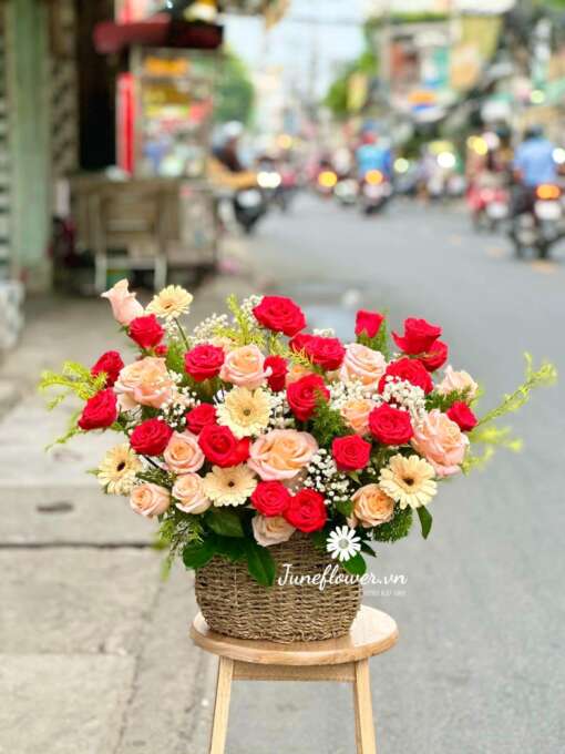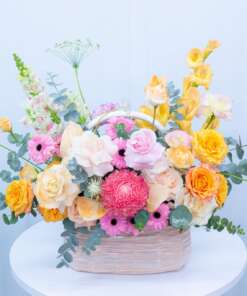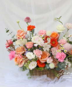 Giỏ hoa hồng Juliet mix tone hồng – cam