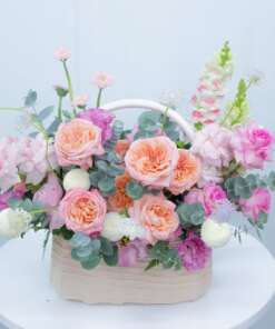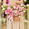 Giỏ hoa tone hồng theo phong cách hiện đại