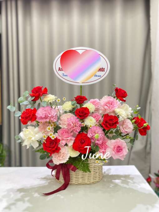 Giỏ hoa hồng mix tone đỏ- hồng
