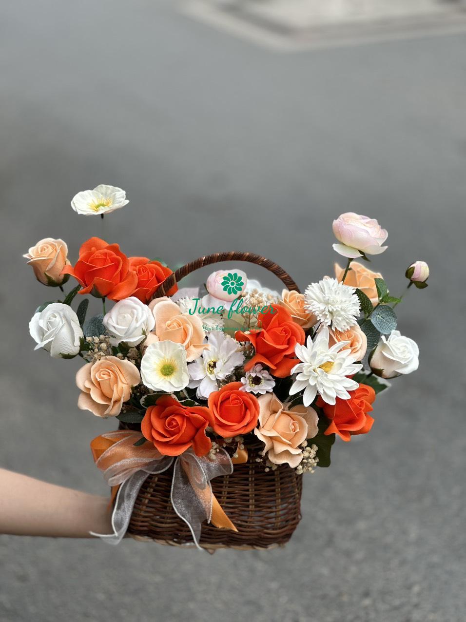 Giỏ Hoa Sáp Khai Trương Tone Cam