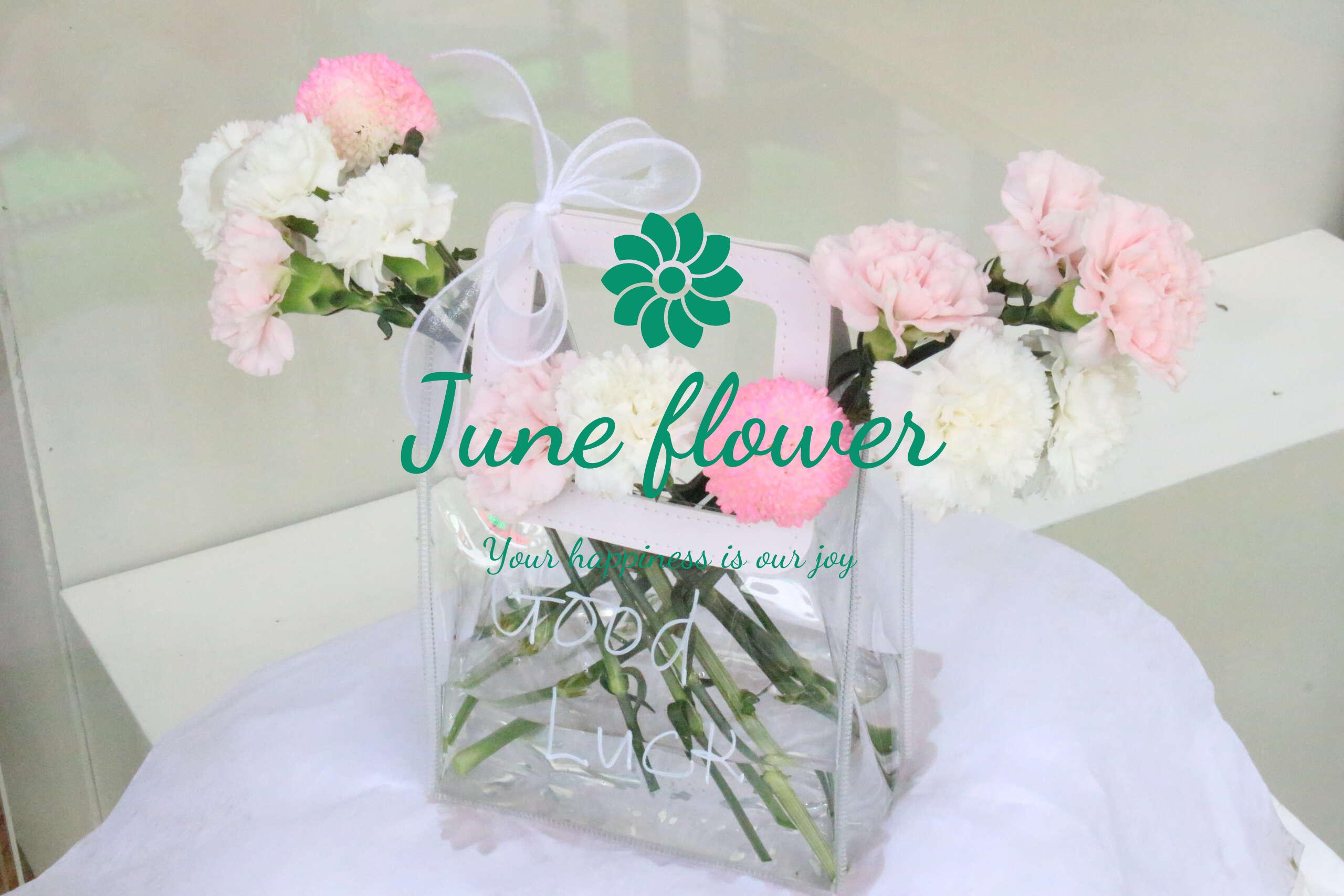 Giỏ hoa quà tặng tone màu hồng ngọt ngào như 1 viên kẹo dâu. Màu pastel sang và rất Hàn Quốc. Được kết hợp đơn giản chỉ bằng một loại hoa cẩm chướng nhưng không làm giỏ hoa đơn điệu mà làm cho giỏ hoa trở nên thu hút ánh nhìn với những cô nàng thích sự đơn giản.