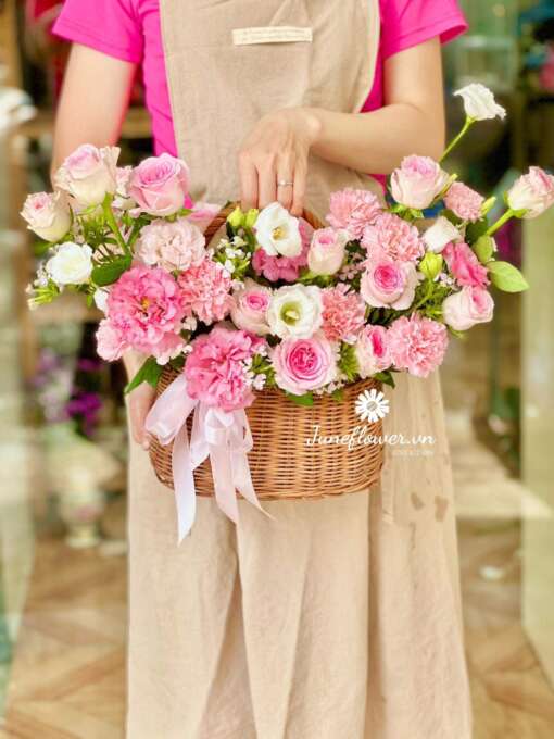 Giỏ hoa cúc Mẫu Đơn mix tone hồng
