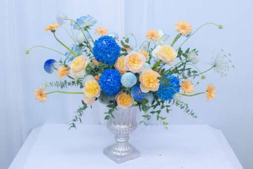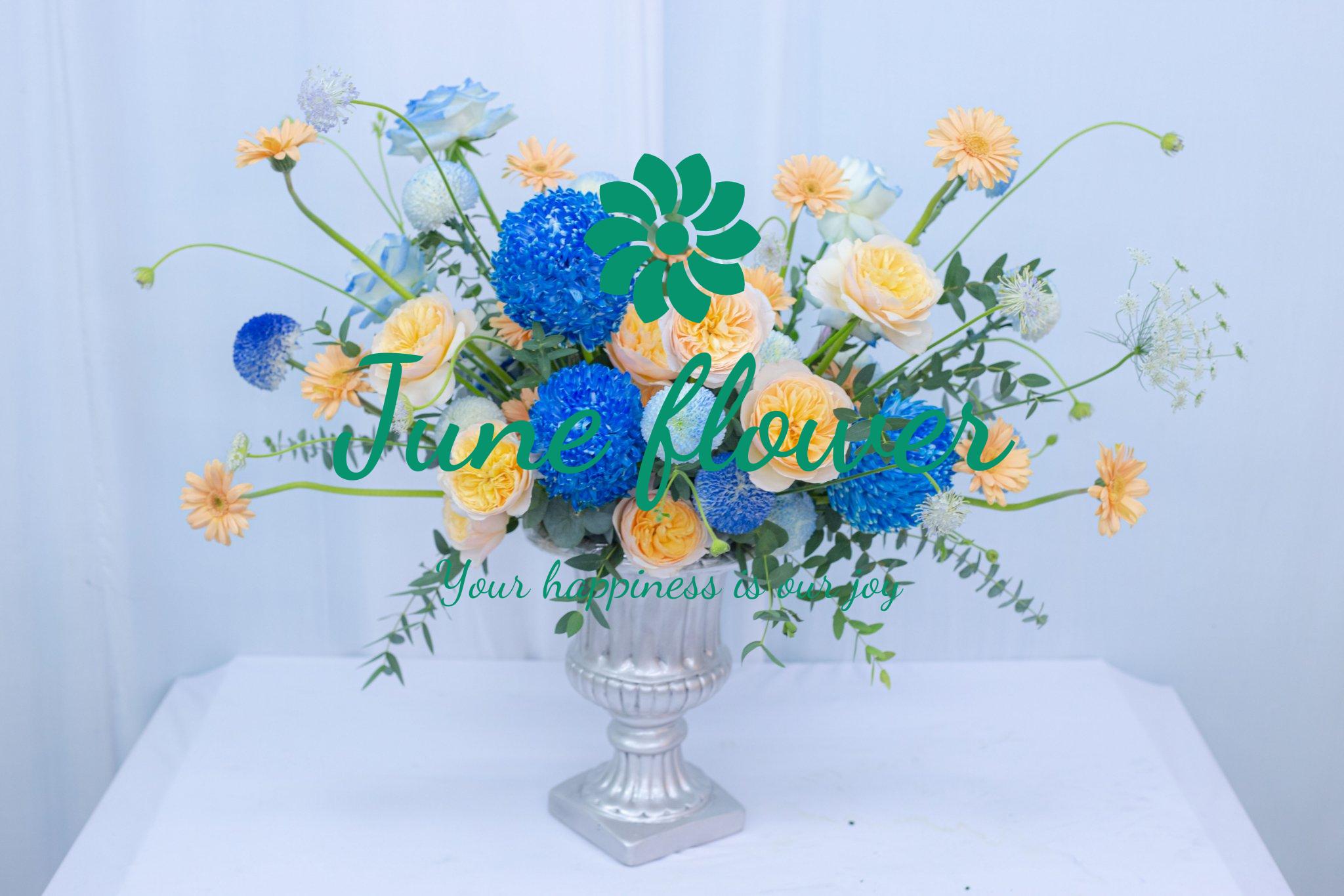 Categories: HOA CẮM BÌNH, MÀU VÀNG, MÀU XANH (XANH LÁ/XANH DƯƠNG), TỔNG HỢP Tags: cúc mãu đơn, hồng Juliet, Tone xanh