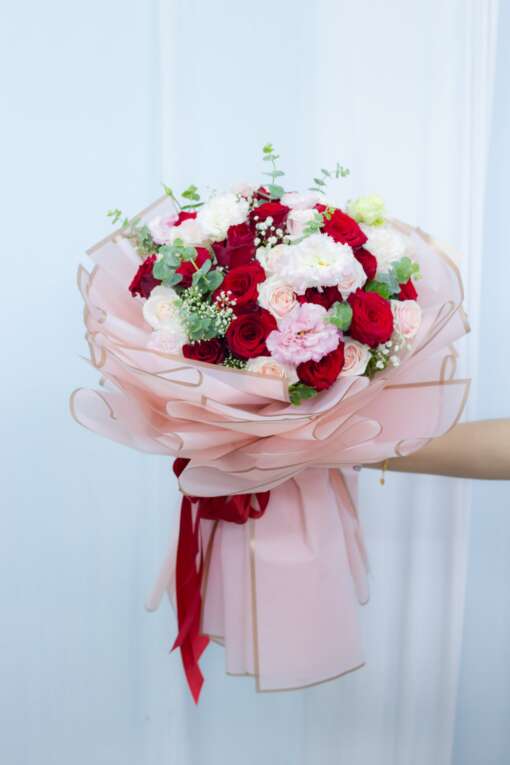 Categories: HOA BÓ, HOA TÌNH YÊU, MÀU TRẮNG, MÀU ĐỎ, TỔNG HỢP Tags: hoa đồng tiền, tone hồng