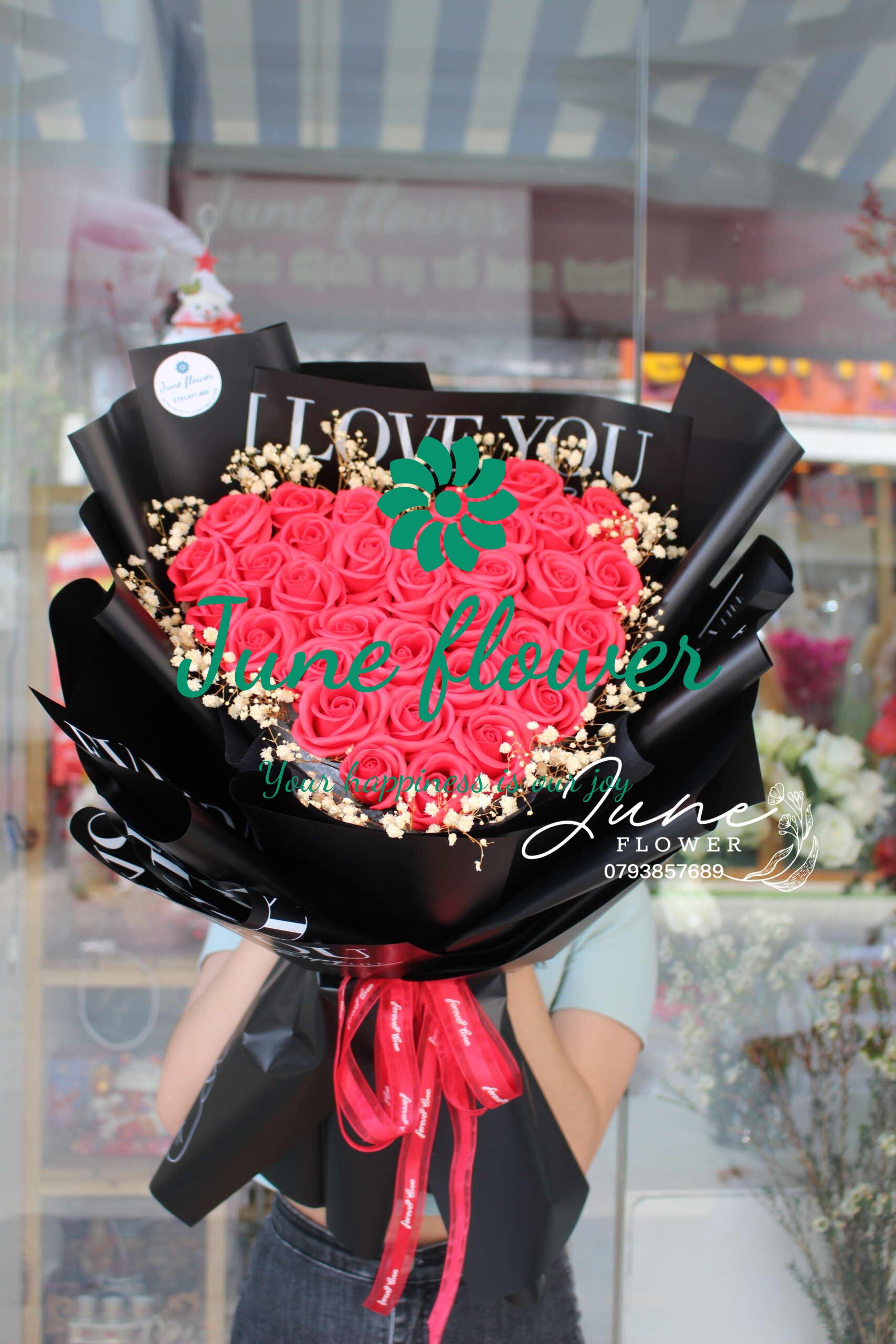 Hoa hồng sáp đỏ trái tim bó bibi