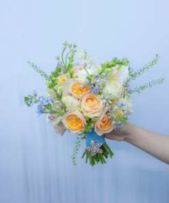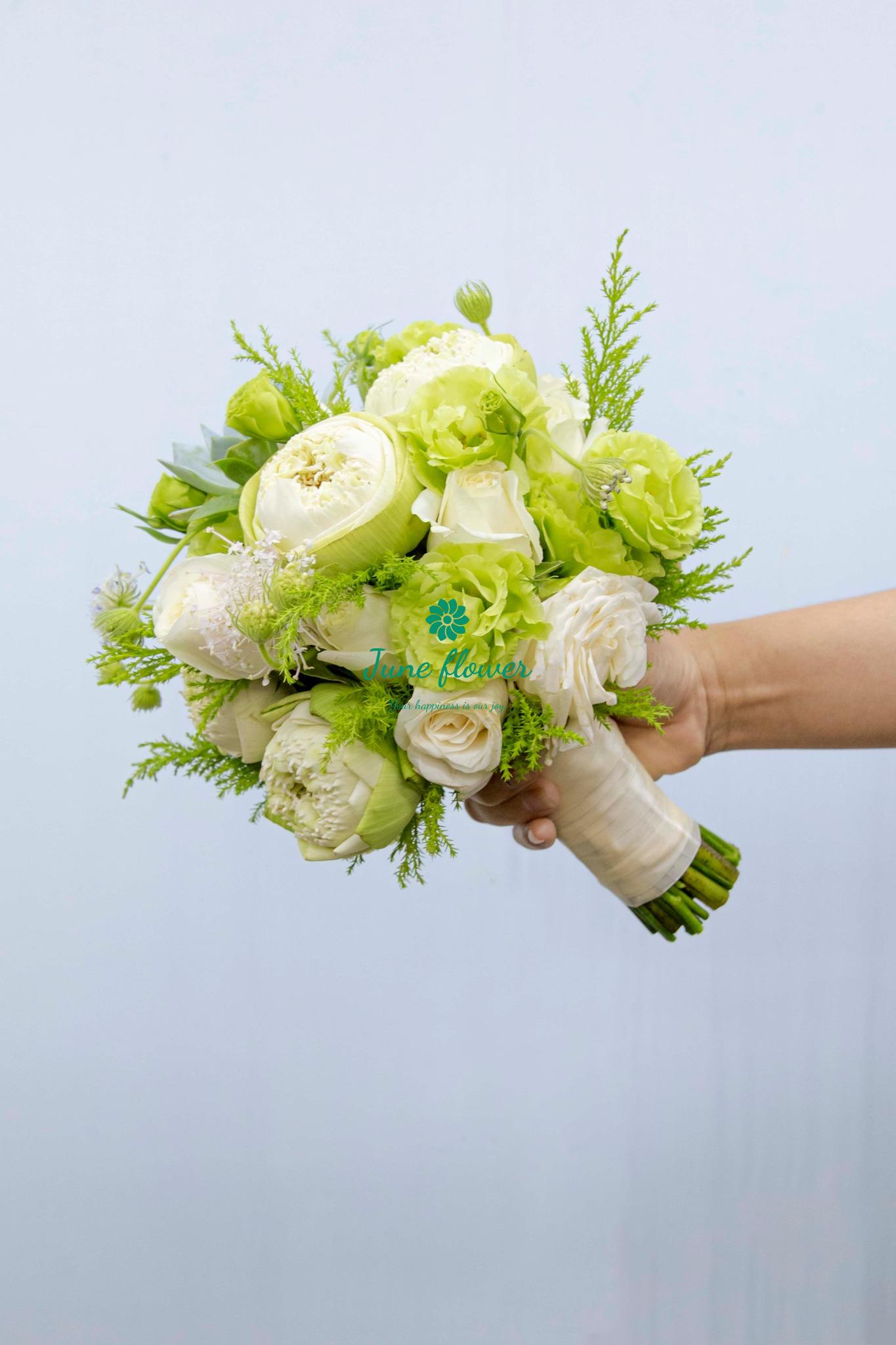 Categories: HOA CƯỚI, MÀU TRẮNG, MÀU XANH (XANH LÁ/XANH DƯƠNG) Tags: cầm tay, cô dâu, hoa cát tường, hoa sen, tone trắng
