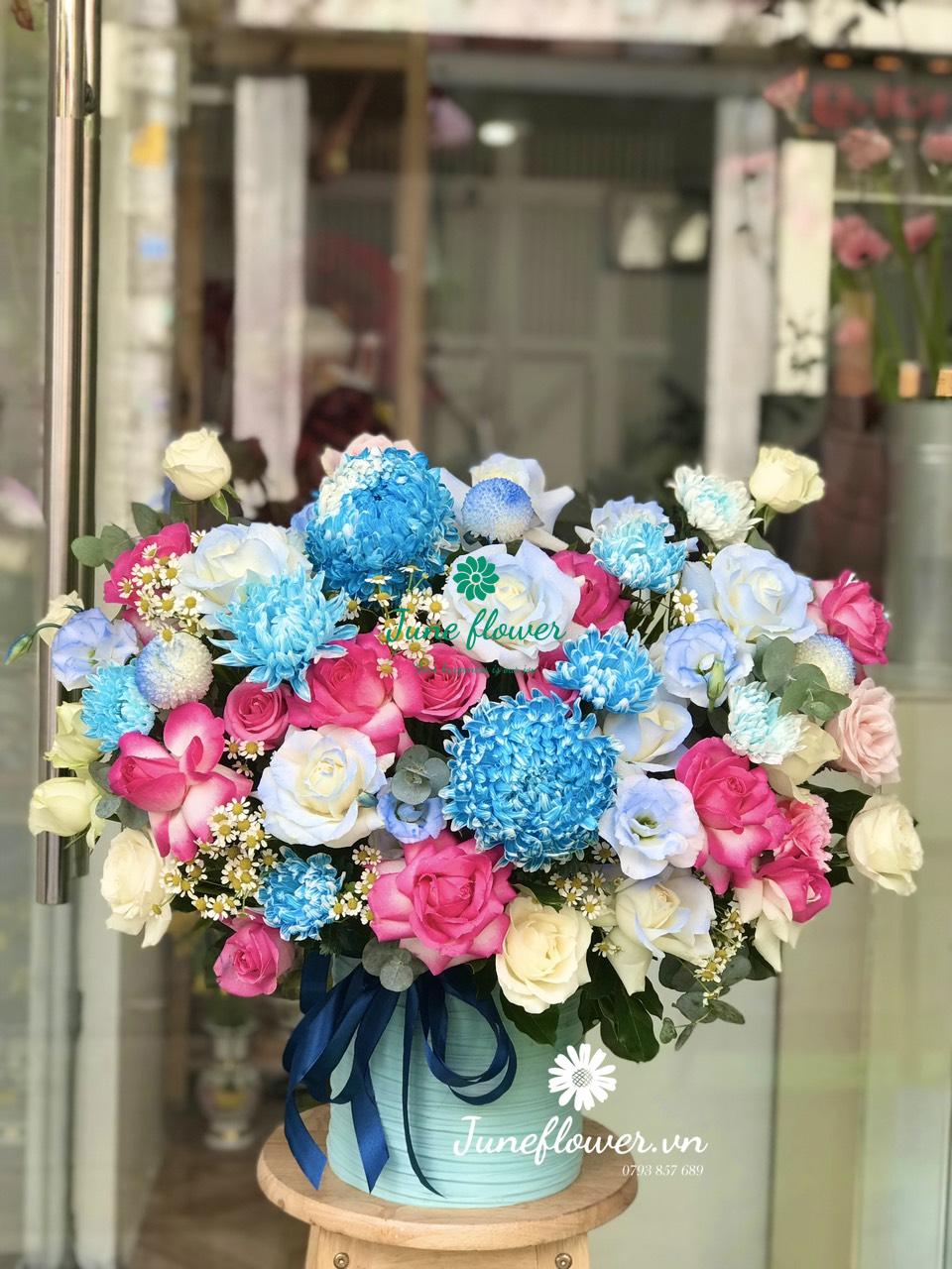 Categories: HOA KHAI TRƯƠNG, HOA SINH NHẬT, HỘP HOA, MÀU HỒNG, MÀU TRẮNG, MÀU XANH (XANH LÁ/XANH DƯƠNG) Tags: hộp hoa chúc mừng, hộp hoa khai trương, hộp hoa phong cách Hàn Quốc, hộp hoa tone xanh hồng, hộp hoa trưng bày lễ cưới