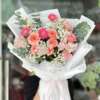 Giỏ hoa hồng mix sen đá tone hồng baby