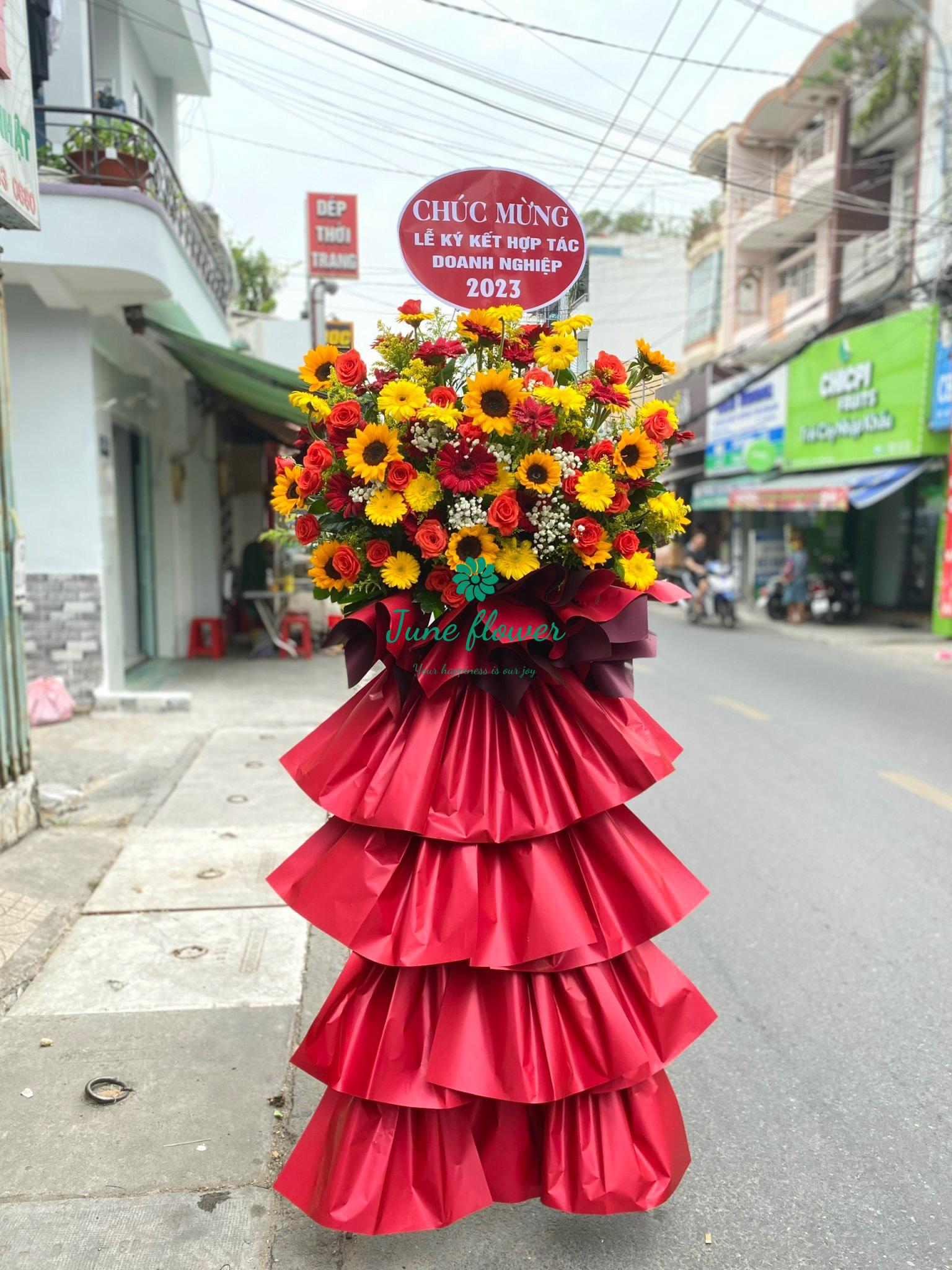Kệ Hoa Khai Trương Tone Đỏ Vàng