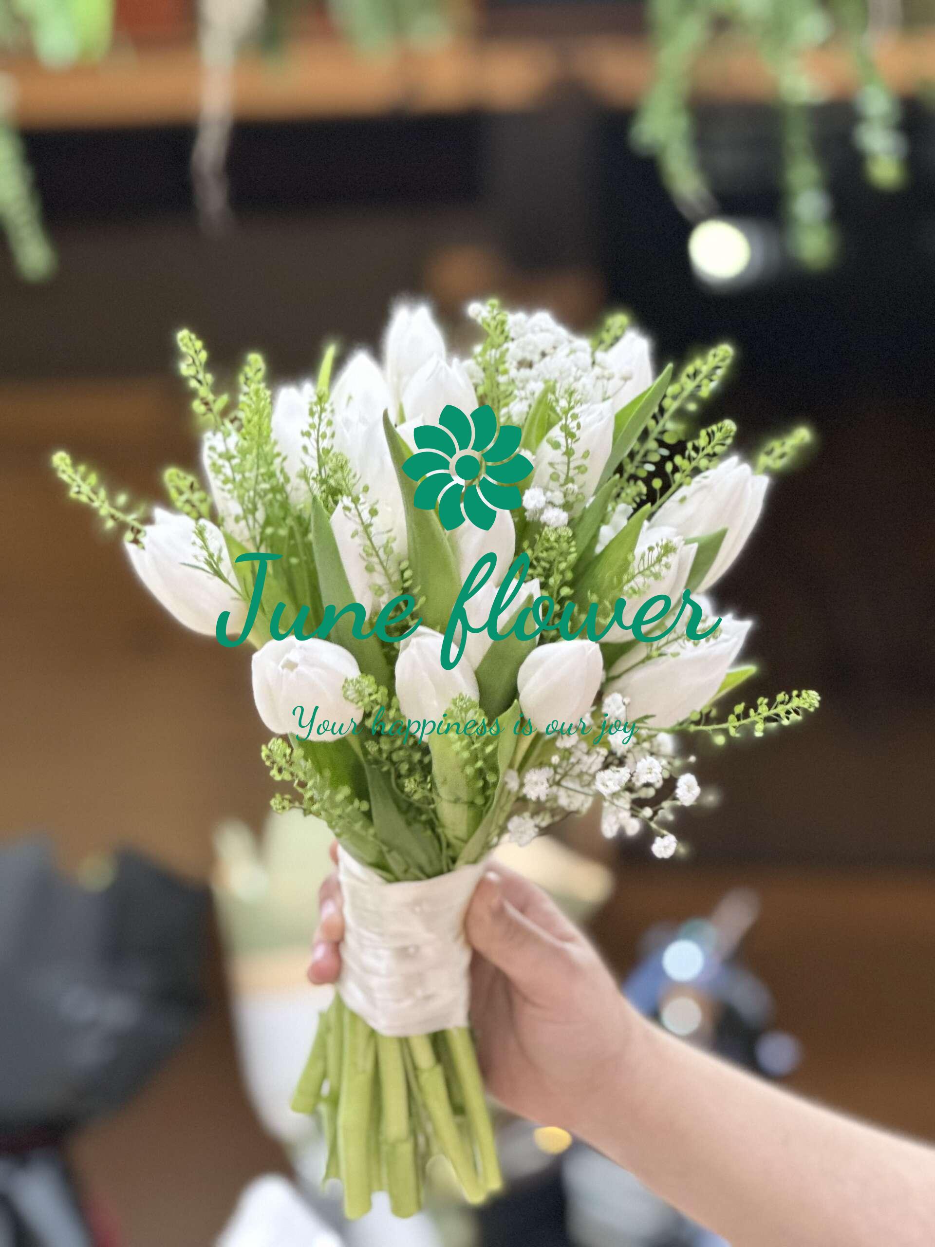 Categories: HOA CƯỚI, MÀU TRẮNG Tags: bó hoa tulip, cầm tay, cô dâu, hoa cưới