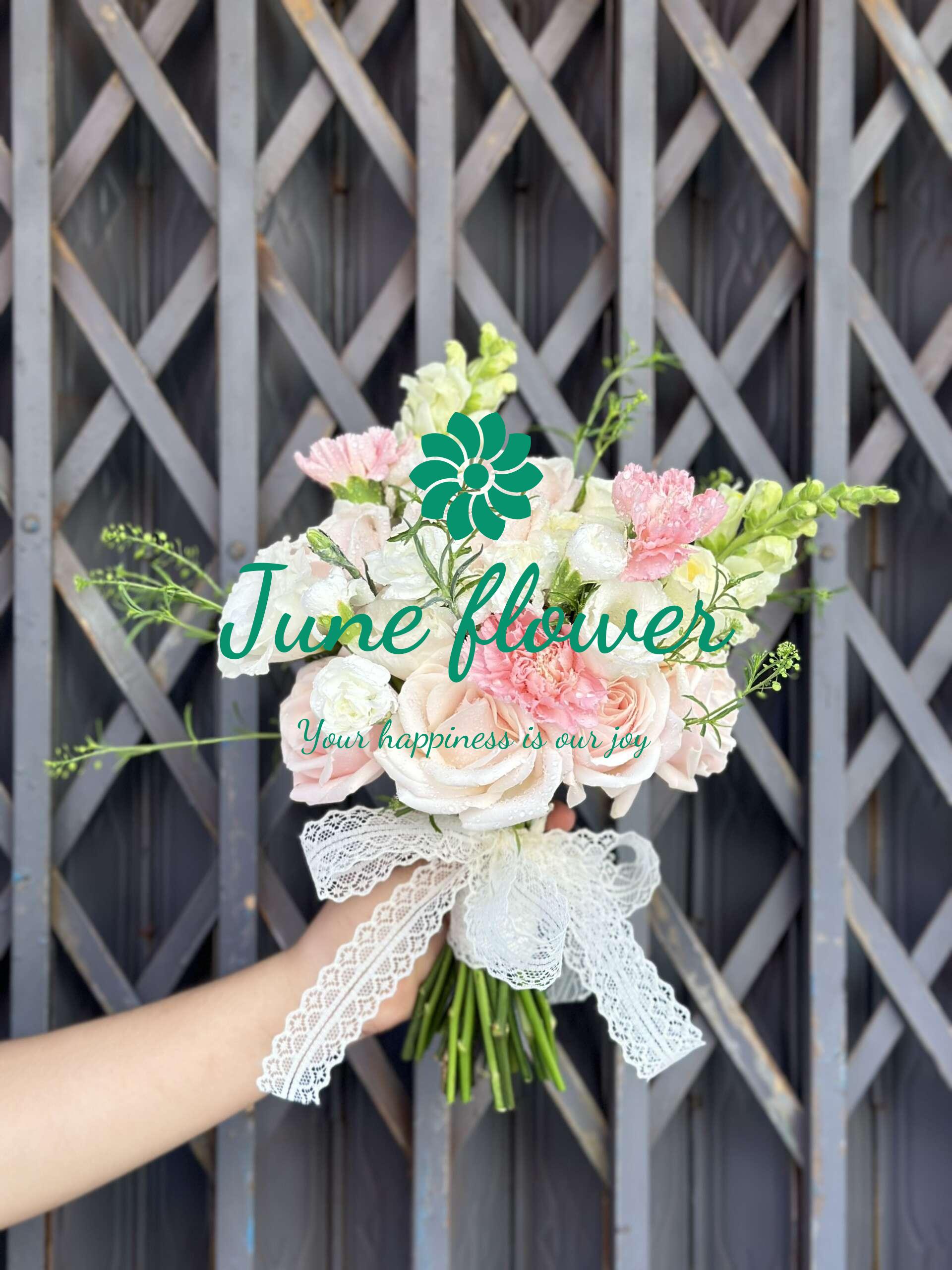 Categories: HOA CƯỚI, MÀU HỒNG, MÀU TRẮNG Tags: bó hoa cưới, cầm tay, cô dâu, hoa cưới
