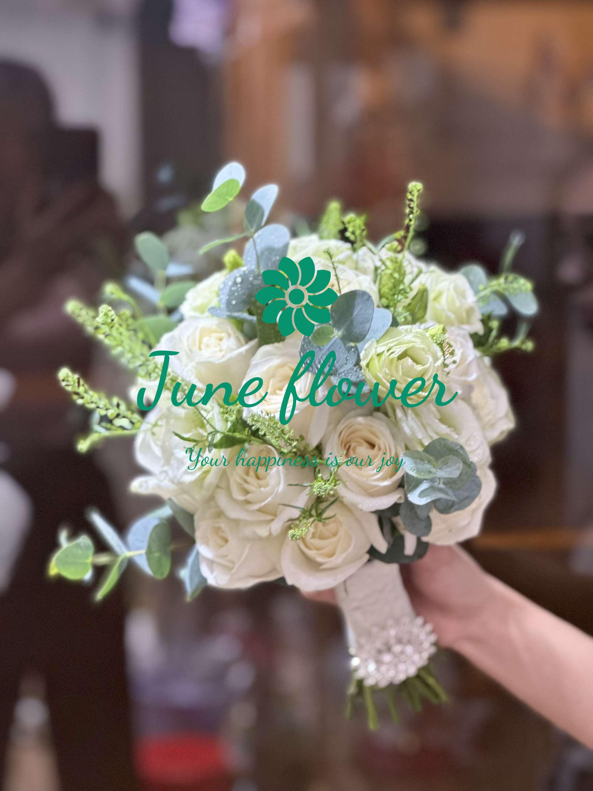 Categories: HOA CƯỚI, MÀU TRẮNG, MÀU XANH (XANH LÁ/XANH DƯƠNG) Tags: bó hoa cưới hồng trắng, cầm tay, châu hoa, hoa cầm tay cô dâu, hoa cưới, hoa cưới form tròn, hoa hồng trắng